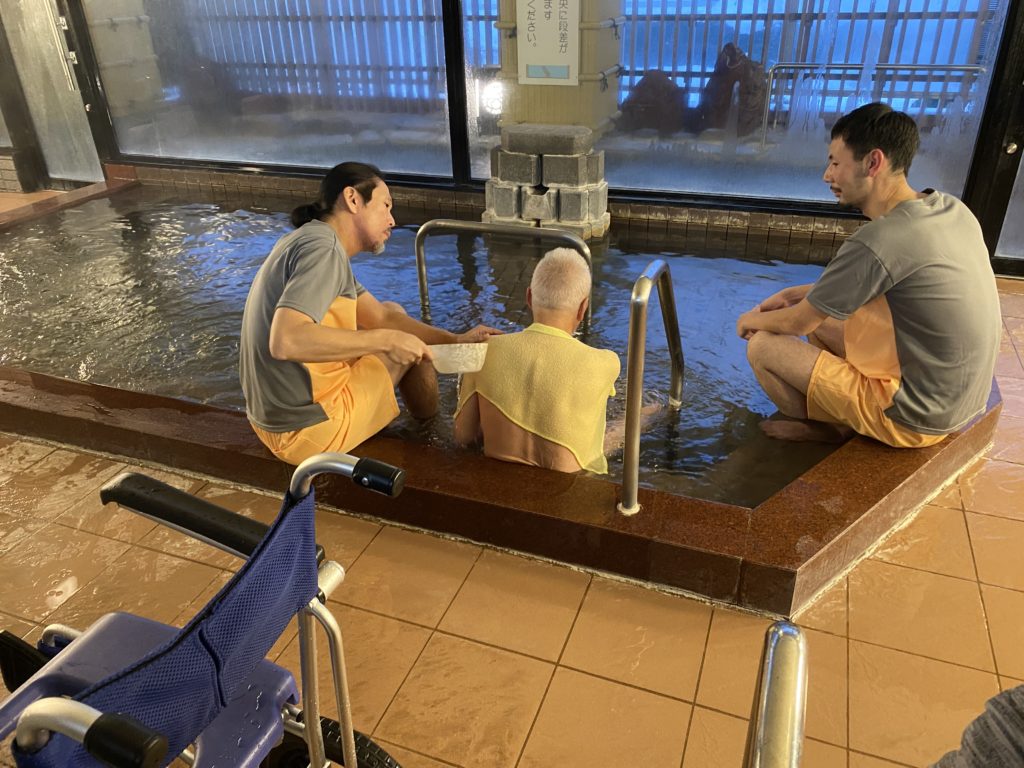 夕方には湯あみヘルパーをご利用いただき、大浴場での入浴をサポートしました。