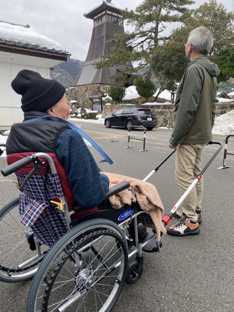 そぞろヘルパーがJINRIKIを使って移動をサポートし、ご家族でゆっくりと街並みを楽しんでいただきました(※利用は要相談)。